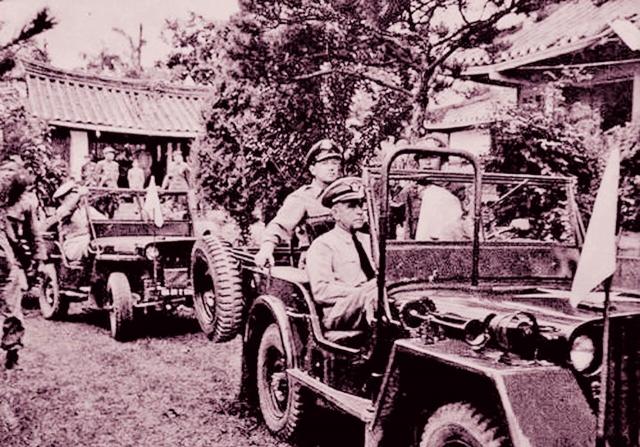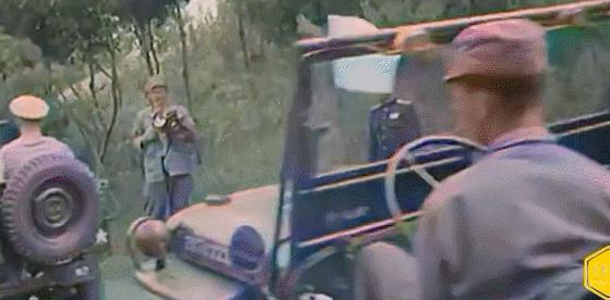 ▲"联军"代表团乘坐插着白旗的汽车来开城谈判,车上坐的是首席代表美国海军中将乔埃。